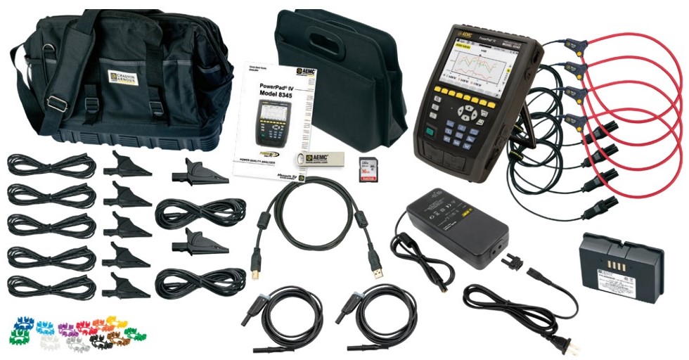 Click on a category to view a selection of compatible accessories with the AEMC 8345 PowerPad IV Power Quality Analyzer with MiniFlex sensors, 5 to 1000 V AC/DC, 1000 V CAT IV.