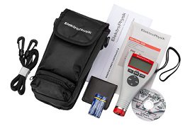 This coating thickness gauge has an integrated SIDSP® digital sensor. The technology platform features the industries’ highest level of accuracy, repeatability and low end resolution. This configuration comes complete with a type B/E magnetic-induction sensor with a measuring range of up to 2 mm and a measuring spot of 10 mm.