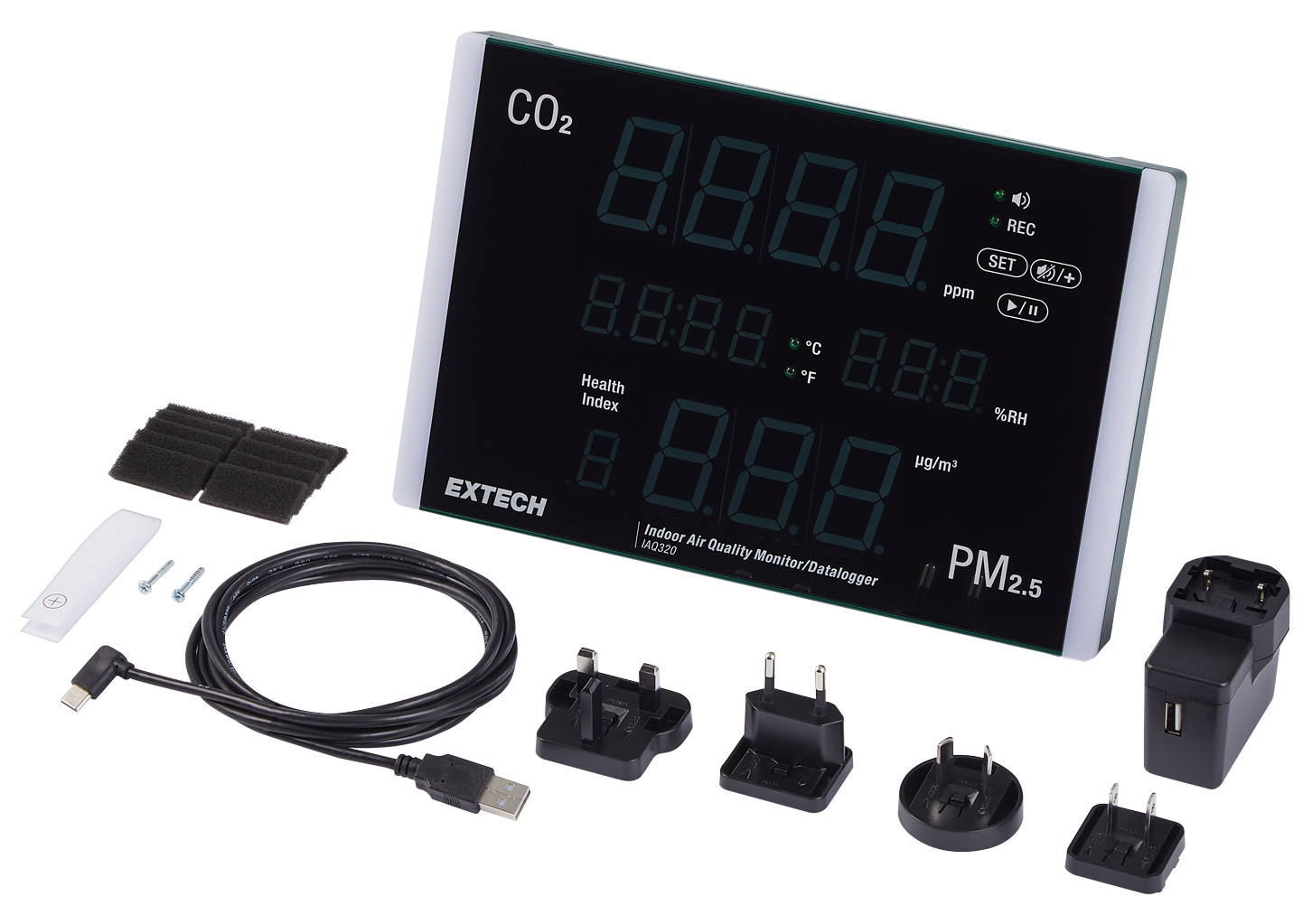Click on a category to view a selection of compatible accessories with the Extech IAQ320 Indoor Air Quality Monitor/Data Logger, PM2.5, CO2.