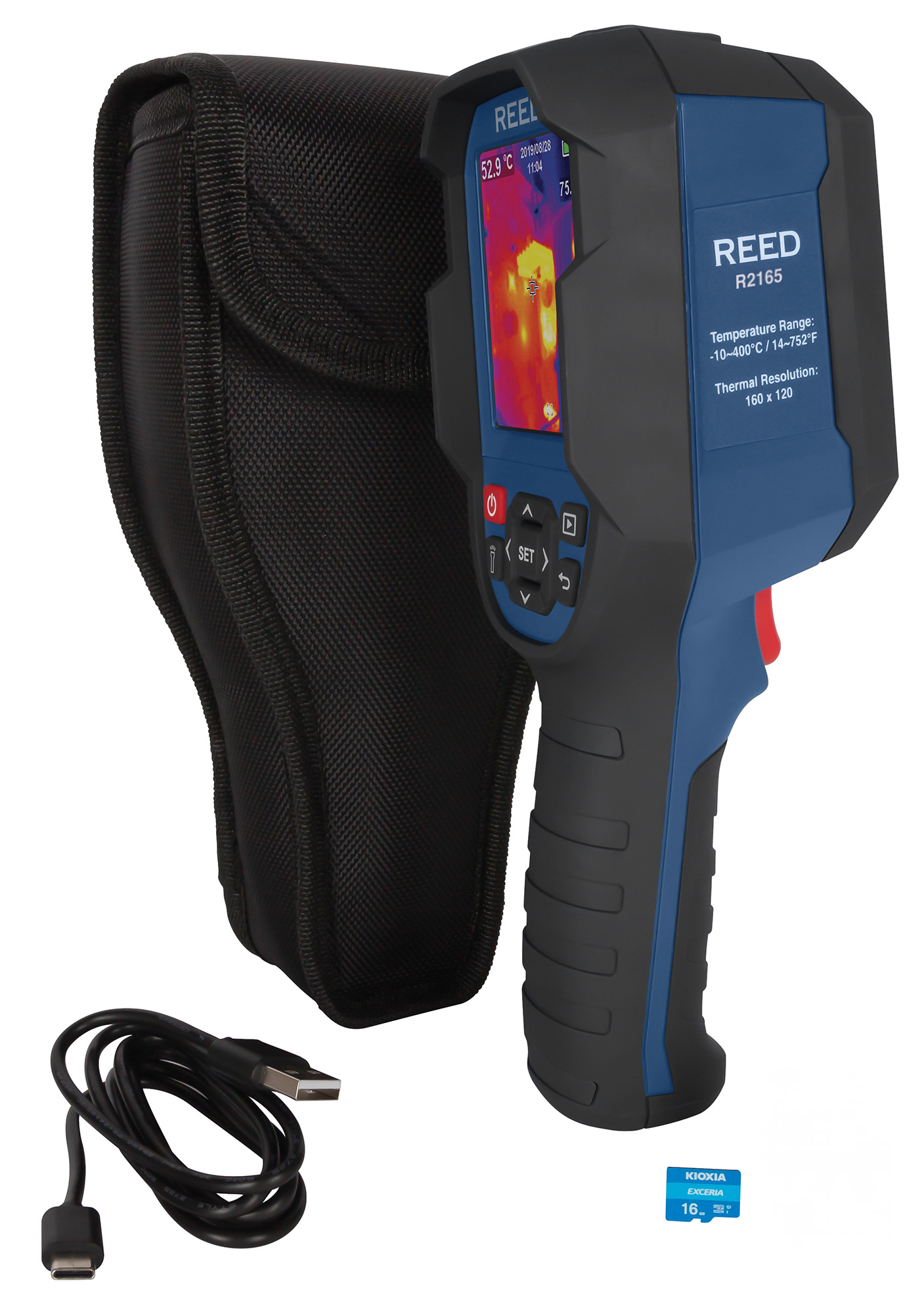 This thermal imaging camera features a 160 x 120 (19,200 pixels) infrared sensor that can detect temperatures between 14 to 752°F (-10 to 400°C). The R2165 has the ability to display hot and cold spot temperatures on a 2.8" color LCD and allows a user to choose from 7 different color palettes. The included software allows a user to view and analyze data, and generate reports or projects in real-time on a PC.