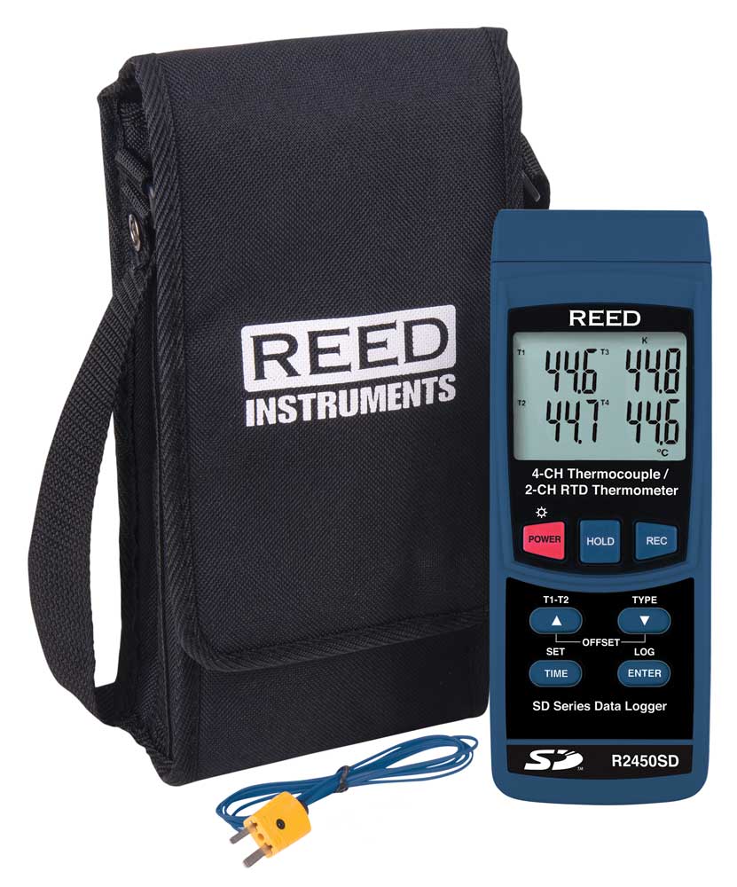 Real-time data logger with integrated SD memory card measures/records up to 4 separate temperature measurements simultaneously as well as temperature differential. Accepts Type K, J , R, S, E, T thermocouples and RTD probes. This product includes a Traceable Calibration Certificate with full Data and Uncertainties.