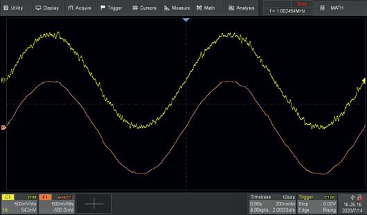 Two Math traces support Plus, Minus, Multiply, Divide, FFT, integration, differential, square root, average, Eres and formula editor, providing a quick insight into the waveform characteristics.