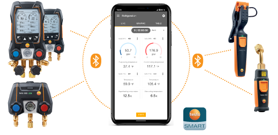 Welcome to the digital age of measurement technology. With the Smart App, you turn your smartphone into a mobile, multi-functional command center for all applications involving refrigeration, air conditioning, and heating systems. Together with the Bluetooth-enabled measuring instruments and Smart probes, this optimally equips you for the future. And everything which comes after it.