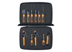 The Testo 0563 0007 Smart Probes HVAC/R Complete Kit, combined with the REED R5050 True RMS AC/DC Clamp Meter, delivers a powerful toolkit for HVAC/R and electrical professionals. The Smart Probes kit provides precise measurement of temperature, humidity, flow, and pressure, enabling comprehensive diagnostics for air conditioning, refrigeration, and heating systems. Complementing this, the REED R5050 clamp meter offers accurate AC/DC current measurement with peak hold functionality and a digital bar graph for real-time analysis. Together, these tools empower technicians to efficiently handle system optimization, troubleshooting, and maintenance with unmatched reliability and precision.